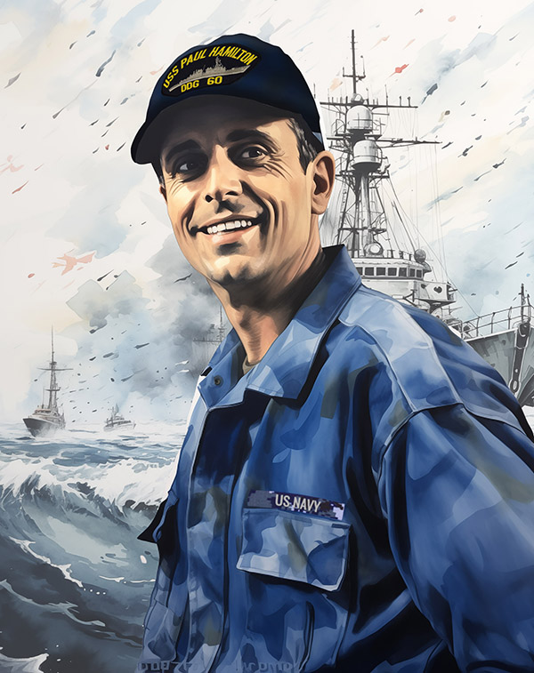 With a selfie and details of your service (branch, rank, years of service, name of ship for Navy vets) I'll create a nice casual portrait in your duty uniform. $35 payment required.