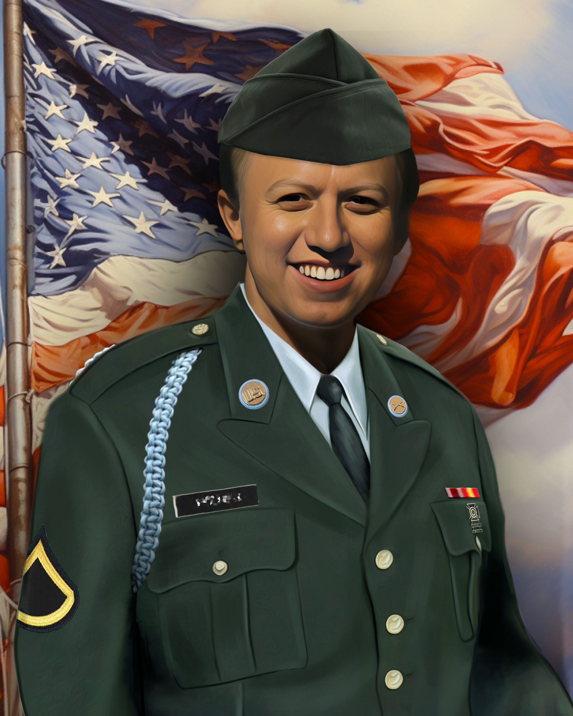 With a selfie and details of your service (branch, rank, years of service, awards and ribbons) I'll create a sharp, detailed portrait of you in your dress uniform. $50 deposit required - balance when complete and approved.